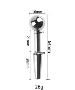 Ako tražite igračku koja će dodatno učvrstiti vašu muškost a potpuno je novi vid zabave za vas istražite svoje telo penetrirajte unutar penisa sa Metalnom Uretrom 4. Iznenadite sebe, opustite se i uživajte u novom vidu stimulacije dok vam se kanal blago otvara i širi kako bi na vrhuncu mlaz bio deblji i bogatiji. Izrađena je od kvalitetnog hiruškog čelika, vretenastog oblika sa jednom kaskadom i kugicom na vrhu radi lakše manipulacije. Ukupne dužine od 6cm i (penetrirajućeg dela od 5cm) prečnika u najširem delu od 1cm. Ovaj neverovatni proizvod masiraće vaš penis iznutra i blago širiti mokraćni kanal. Dizajniran tako da lepo izgleda i kao ukras dodatno će vas potstaći da radite na sebi. Za održavanje vam je potrebna topla voda i Toys cleaner, osušenu igračku odložite do narednog puta.